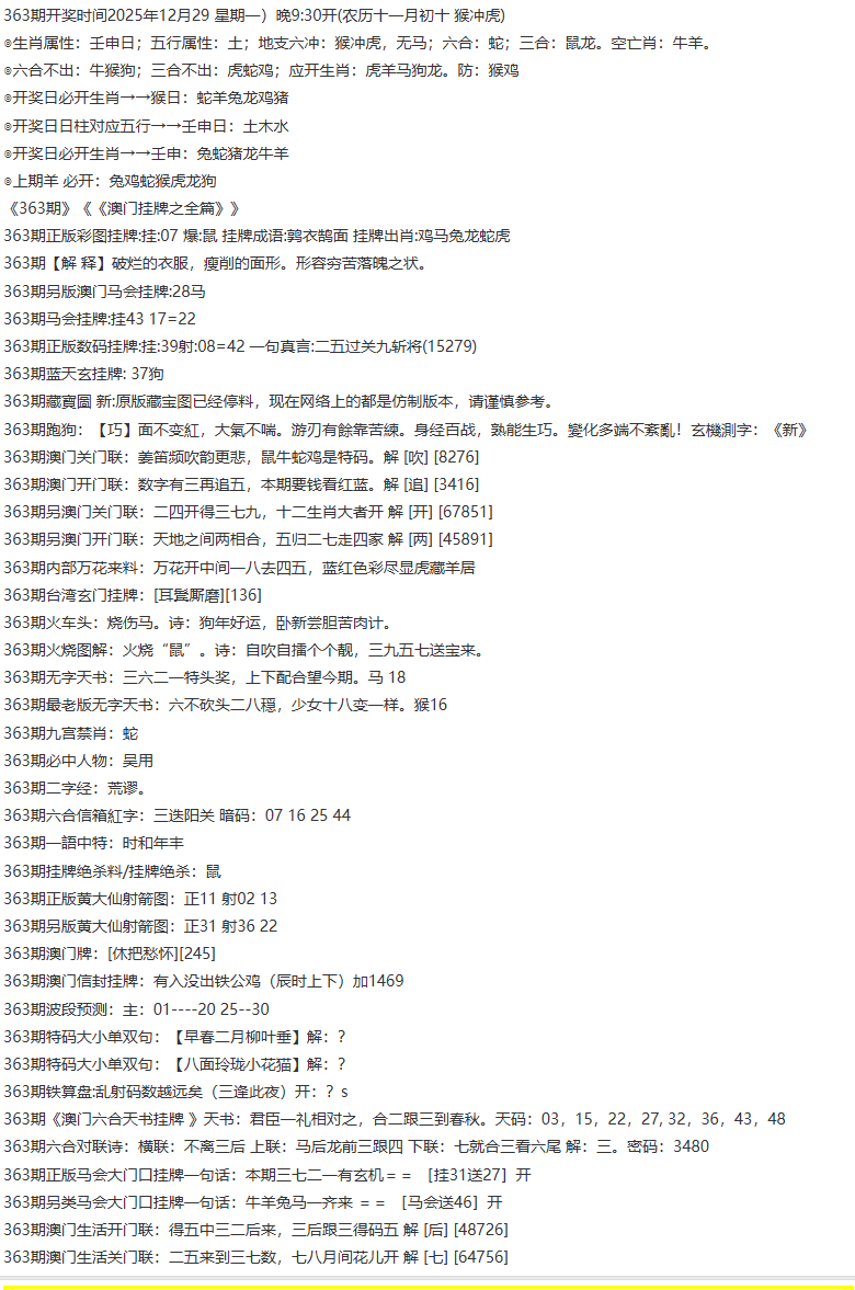 363期【澳门挂牌平特报】| 澳门挂牌原创解挂牌平特报,每期必中平特 |