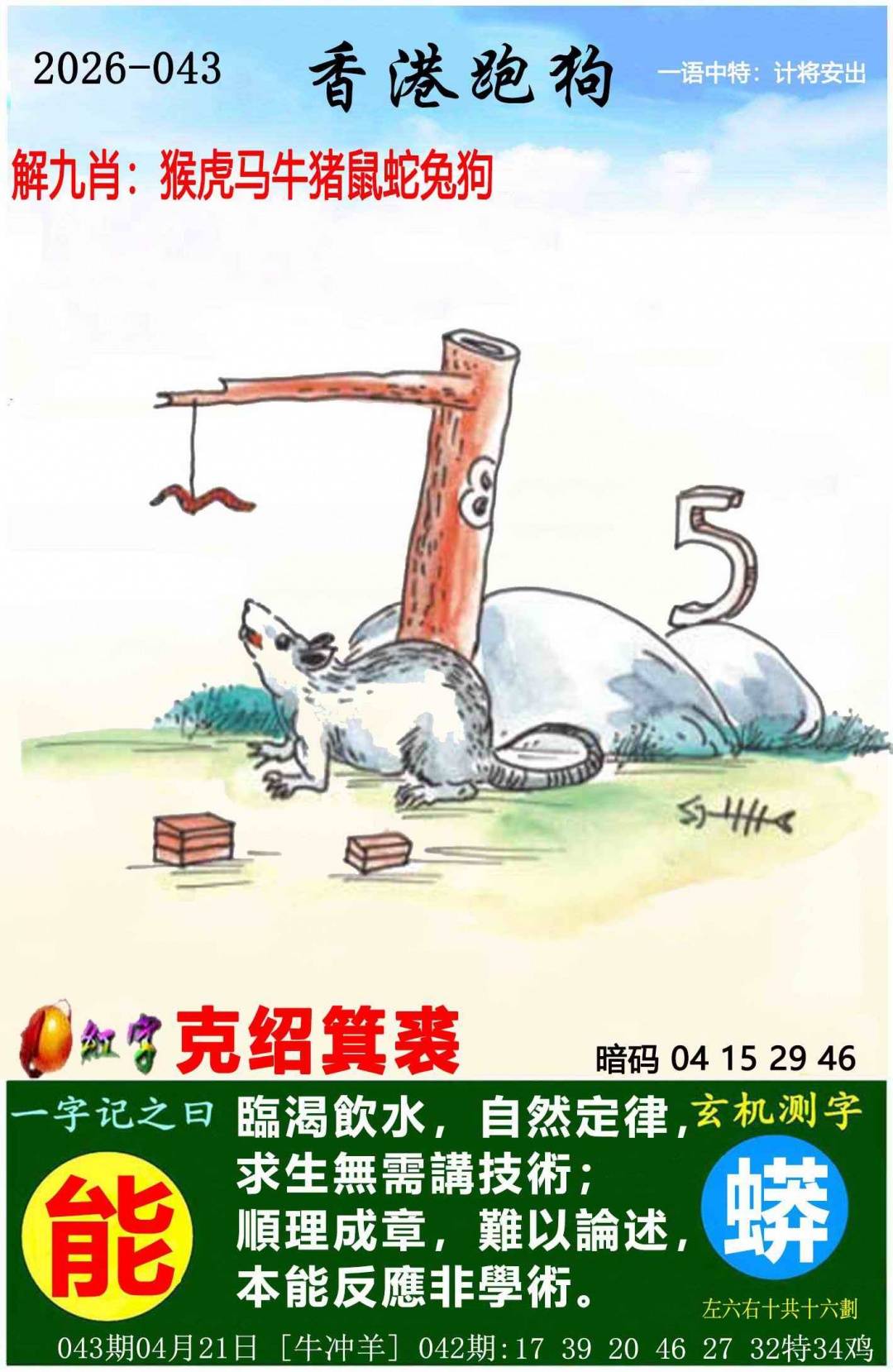 | 五肖:马虎羊鼠龙 | ⑤码:记住相互转告 |