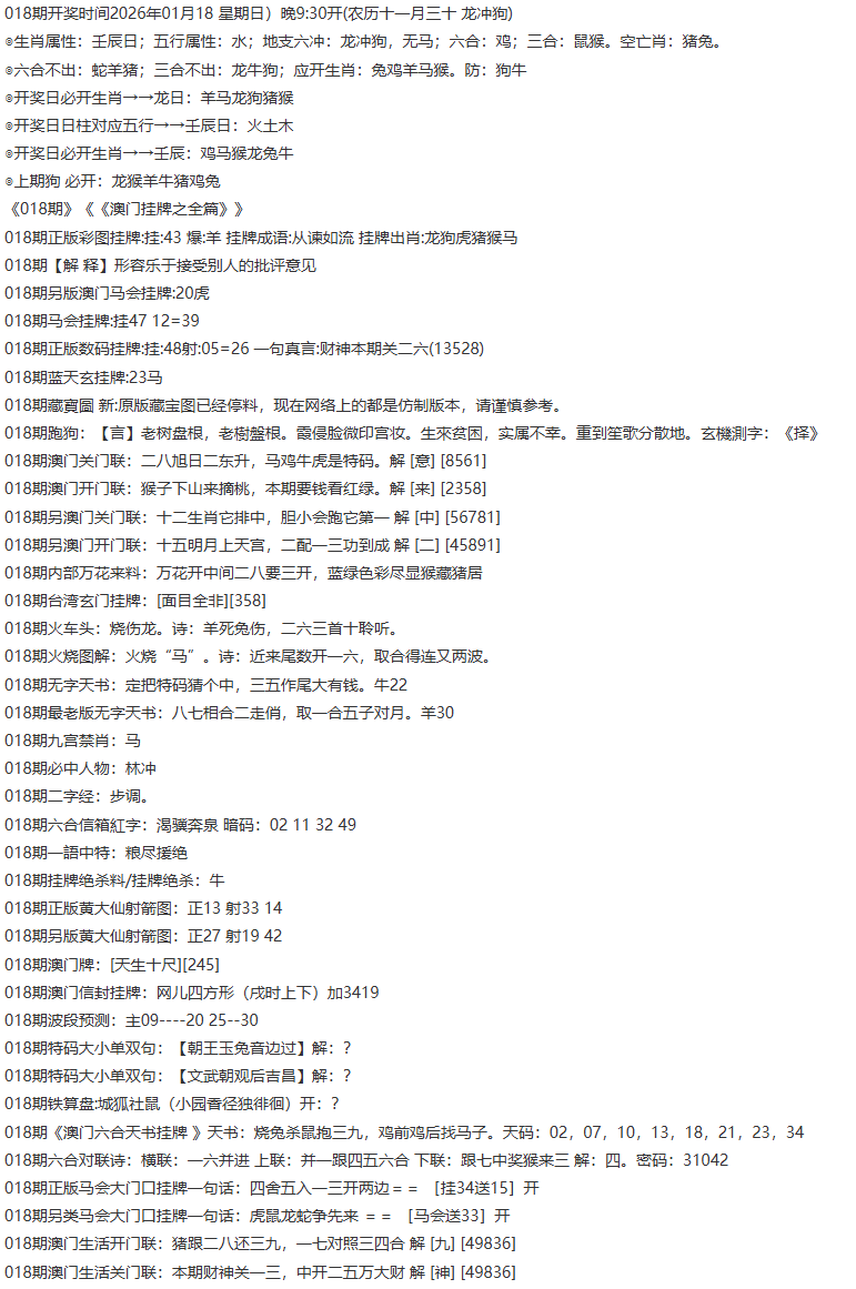 | 018期:特码开奖结果<开:?00准> | |