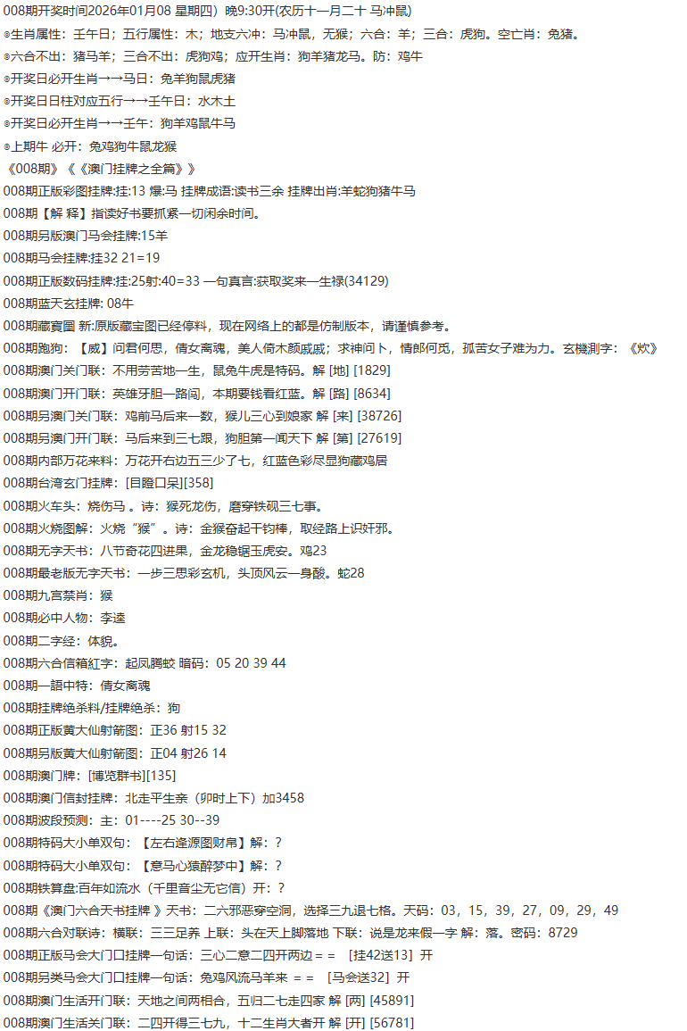 008期:前后肖必中【后肖后肖】开:鸡21准 |